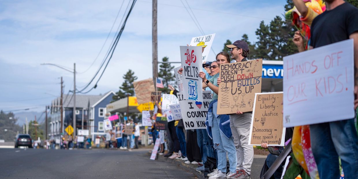 In Lincoln City, at least 1100 took to the street. Protestors included a zebra, cat, bee, eagle, frog, rooster, two handmaids, shark, T-Rex, eagle, flamingo, hippo, two unicorns, cowboy, clown, and a bagpiper.